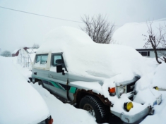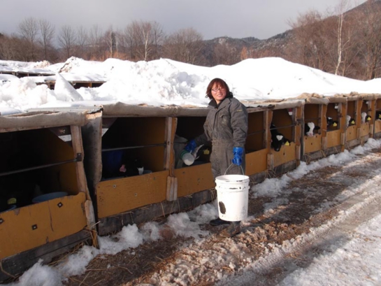 特に雪が多いのが今年の特徴で、みるみるうちに1m以上の積雪に。1月の分もまとめて降ってくれたのならいいんですが。それにドカッと降った後には決まって強風が吹き、前が見えないほどの猛吹雪になります。そういう日は暖かい部屋でゆっくりと仕事、なーんてことが出来ないのが牛飼いで、どんな悪天候でも外で牛達の餌やりが待っています。