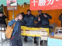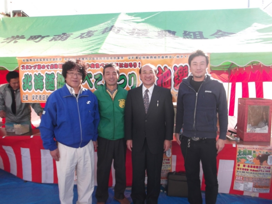 東日本大震災後、被災された方々にジャージー牛を使ってなにか出来ないかと考えていたところ当牧場の福島県南会津町出身、湯田専務の実家のお父さんを通じて南相馬市原町区の栄町商店街と連絡が取れ、11月3日の復興セール抽選会の賞品や会場で配る牛汁として使っていただくことになりました。