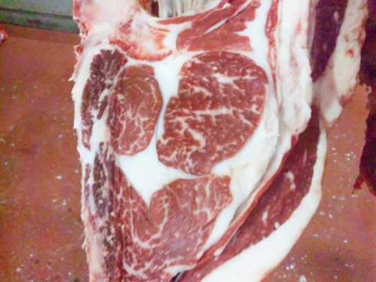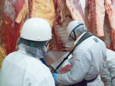 まず始めに帯広畜産大学の口田教授にお願いして、枝肉の写真を最新の機器を使って撮影し、また旨味成分である脂肪酸組成を調べるために、北海道畜産公社十勝工場で屠畜した牛のサンプリングに行って来ました。何百とある枝肉の中からジャージー牛を探し出し、先生と学生さんがてきぱきと作業を進めて行きます。興味深かったのは一頭のジャージー牛の脂肪の色が見事に黄色く、まず他の品種の牛では見られないとのことでした。