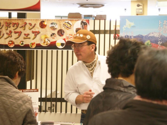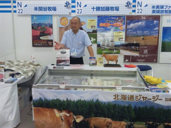北海道からは約120社の出店、南九州から50店。大企業から関谷牧場まで様々な食が集まり、それはそれは貴重で大変有意義な体験をしてきました。試食品の調理のために、トムラウシのシェフ、伊東さんにも同行していただきました。 最初は緊張のためか、前夜の飲み過ぎの為か、なかなか声が出なかったのですが一口試食してもらうとほとんどの人が 「うまいねー!」 という反応。わがジャージー牛は舌の肥えてる業者さんにもわかっていただけたと自信を深めたと共に、最高に嬉しい二日間になりました。