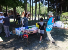一息ついたら出店の準備に取りかかり、各家自慢の食べ物や、遊びの店が出ます。ちなみに関谷牧場では、生ビールとジュース、かき氷屋、焼き鳥豚串、お面と型抜き、そして今年から新登場のジャージー牛丼と盛りだくさんです。約20軒ほどの出店で、夕方涼しくなるまで楽しいひとときが続きました。夕方の餌やり、大丈夫かなー?