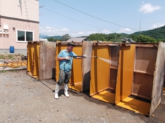 使い終わったカーフハッチを洗い場まで運び、高圧洗浄機でこびりついた糞尿を洗い流し、消毒します。人間でいえば、生まれて間もない赤ちゃんが暮らす家みたいなものなので、残っていた雑菌によって病気にならないように細心の注意を払います。ハッチの設置場所も、きれいに掃除をしてから石灰をまいて消毒し、設置します。
