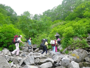 今年は中学生2人、小学生5人、大人10人という大パーティーで一泊二日の予定で行われました。天候にも恵まれ、見事な景色と高山植物。岩場ではたくさんのナキウサギが出迎えてくれて子供達は大興奮。たいしたトラブルもなく無事キャンプ地にたどりつきました。