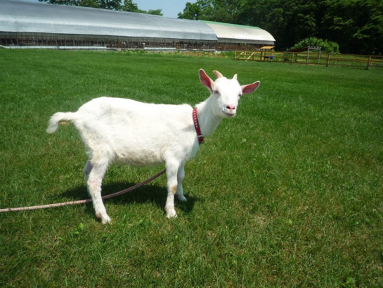 関谷牧場に、またまた新しい仲間がやってきました。仔山羊の小梅さんです。市場の知り合いで、山羊のミルクでチーズなどの加工品を作っているところから無理を言って譲ってもらいました。