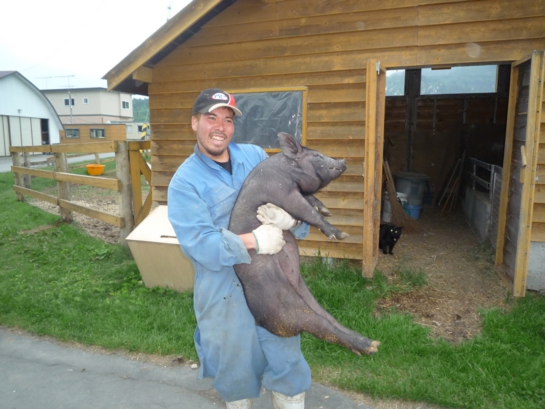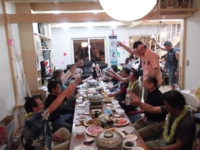 沖縄出身、前川君の実家の牧場からアグー豚肉が大量に届いたので、お隣の武藤牧場もまきこんで盛大な夕食会が行われました。