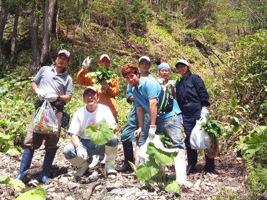 フキ・イタドリ・エゾノリュウキンカ、みんなの大好物行者ニンニク・ウド、そして山菜の王様タラの芽と大収穫です。2時間ほどして牧場に戻り、さっそく天ぷらやおひたしにしていただきました。その旨さにはみんな大感動!この時期、この地域ならではの味。また冬の間に身体が求めていた栄養素がたっぷり詰まった山菜は絶品です。トムラウシの山の幸に感謝しつつ、冷えたビールで昼間っから盛り上がった一日でした。