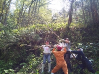 トムラウシ少年グリーンクラブの恒例行事、ハイキングが関谷牧場周辺と十勝川の河原で行われました。まず牧場近辺の山菜を採るために車で林道に入って行ったところ、突然「熊だー!」という声がして、驚いて見たところなんとすぐ横の木に、子熊が登っているではありませんか。車が来たので慌てて登ったのでしょう。何人かの子が本物の熊を目撃出来てラッキーでしたが、その付近での山菜採りは中止にして帰ってきました。残念ながら写真は撮れなかったけど、ちょっと冷や汗ものでした。