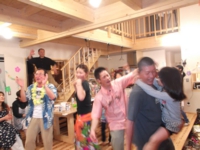 名付けて「沖縄ナイトー!」。牧場の若者たちが準備した色とりどりのレイとアロハ、オリオンビールに泡盛で大いに盛り上がりました。メニューはアグー豚のしゃぶしゃぶ、ゴーヤとソーメンチャンプルー。海ブドウに刺身に卵焼きとスパムがのったおにぎり。シメは産地直送の沖縄そばで参加者全員大満足~!酔いがまわるにつれ、沖縄民謡とBEGINの曲にあわせてカチャーシーを踊り始めました。しかしアグー豚の美味しさにはみんなびっくり。口の中でとろける旨さにまいったなー。 沖縄の前川牧場様。またよろしくお願いします。