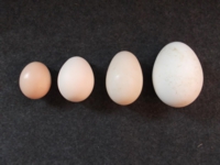 ガチョ子の卵は大きくてニワトリの4個分ぐらいはあり、アヒルで2個分くらい。