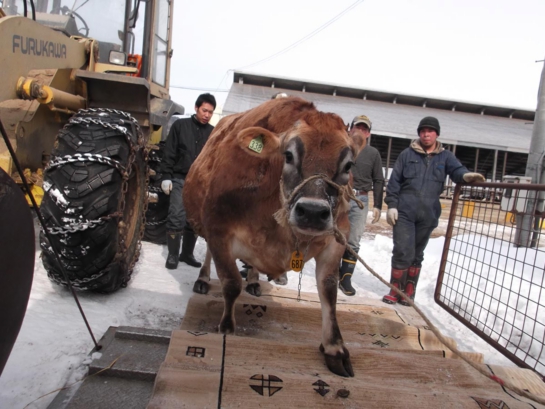 震災そのものの被害もまだいたるところに見られたようですが、やはり原発の影響で家に帰ることが出来ない人達が大勢いて、自然の脅威以上に人間の作った原発の恐ろしさをよりいっそう思い知らされたようです。でもジャージー牛を受け取ってもらったときに 「遠いところからありがとう」とか「牛汁おいしかったよ」とあたたかい声をかけてもらい反対に元気をもらって帰ってきました。
