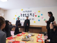 式の後には町内会主催の祝う会が行われました。地域の人達みんなで盛大に祝います。