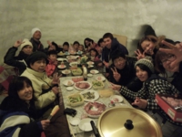 交流館の伊東シェフの美味しい料理と別れのちょっとほろ苦いお酒で楽しいひとときを過ごしました。卒業生二人。高校に行ってもトムラウシ魂を忘れるなー!
