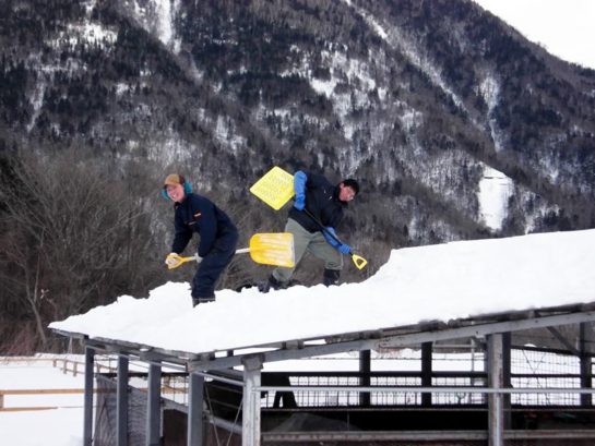 それと風がおさまった後の除雪。2台のショベルローダーがフル稼働で2時間近くかけて牧場内をきれいにします。夏の草刈りから解放されたと思ったら、冬の除雪が始まります。大変だけどまた冬ならではの楽しみもいっぱいです。