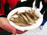 お礼に持参したジャージー牛肉を差し出すと、みやげにと獲れたてのサケをもらい、山の幸と海の幸の物々交換になりました。もうすぐ流氷が来るので春まで漁は休みだそうですが、また乗せてもらえるのを楽しみに紋別へ通います。